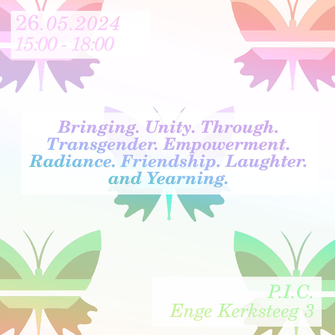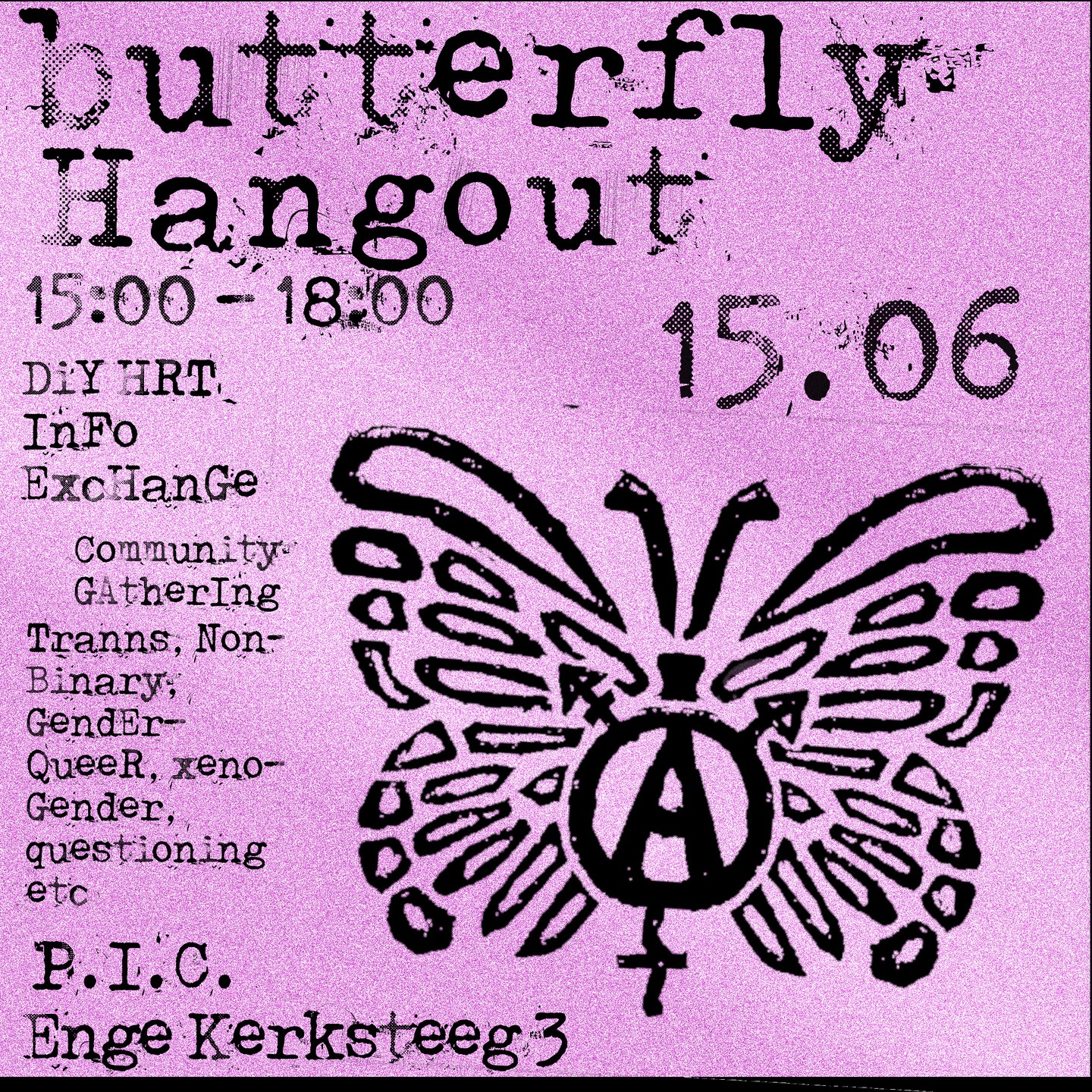 Hiiiii! Long time no see, Upcoming Sunday the 15th of June at 15:00, we invite you all back to our monthly butterfly hangouttttt <3 Come by for a coffee, tea or who knows what at the PIC. Excited to share the space with everyone again :3! For all those not yet in the know, butterfly is a trans-focused, horizontally-run community space. We organise hangouts, skillshares, and anything else people excited for. Oh and by the by... enbies, genderqueers, eggs and allies, you’re also more than welcome to swing by! The event will take place from 15:00 until 18:00, 15th of June, at the lovely P.I.C. (Enge Kerksteeg 3), cya there!!!!! <333
