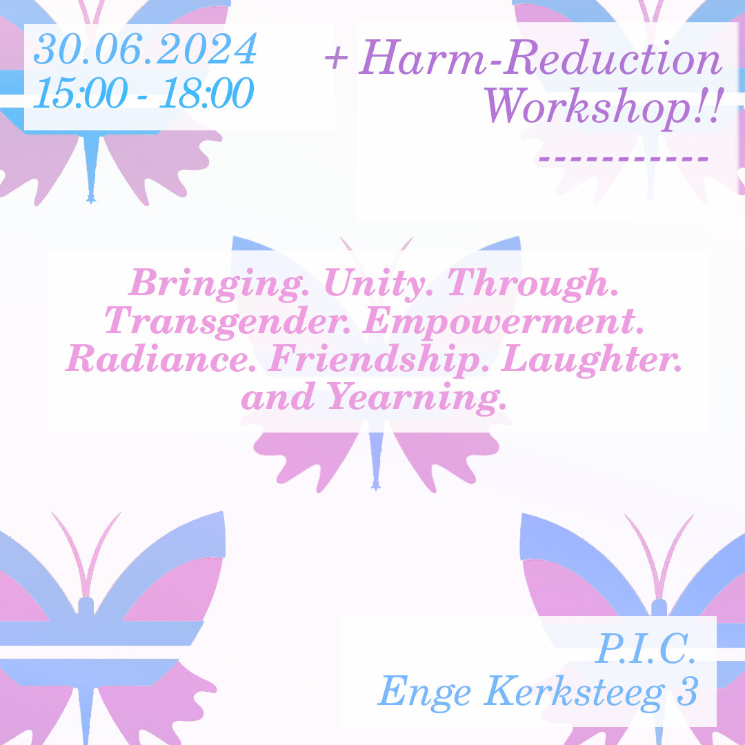 Heee, for our next butterfly, join us for a super cozy talk on how to safely and smartly give yourself meds, all about harm reduction! 🌸✨ Let's learn together and keep each other safe, :3! After the workshop we'll continue the afternoon with our usual trans/nb hangout 💖 Butterfly is a trans only space (and yes enbies you are more than welcome too <3) The event will take place from 15:00 until 18:00, 30th of June, at the Prostitution Information Center (Enge Kerksteeg 3), cya there!!!!! #TransMutualAid #HarmReduction #SelfCare