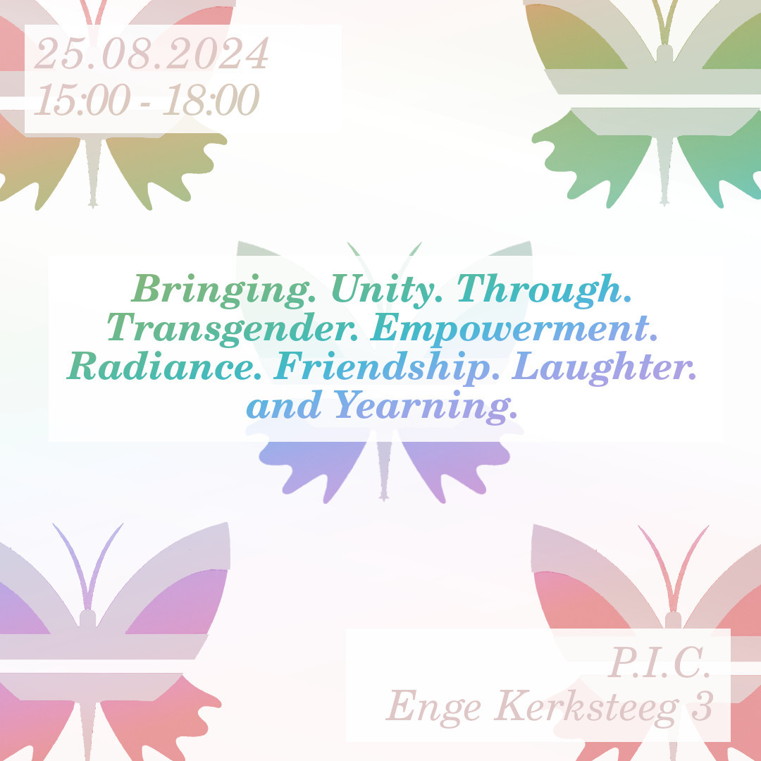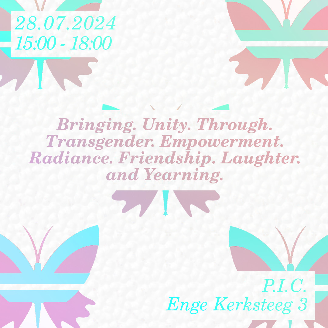Hiiii, we're back on track 🚂 for the summer and would like to invite you to another butterfly hangout 13th of July, 15:00 !! <3 Come by for a coffee, tea or who knows what at the PIC. Excited to share the space with everyone again :3! For all those not yet in the know, butterfly is a trans-focused, horizontally-run community space. We organise hangouts, skillshares, and anything else people excited for. Oh and by the by... enbies, genderqueers, eggs and allies, you’re also more than welcome to swing by! The event will take place from 15:00 until 18:00, 13th of July, at the lovely P.I.C. (Enge Kerksteeg 3), cya there!!!!! <333