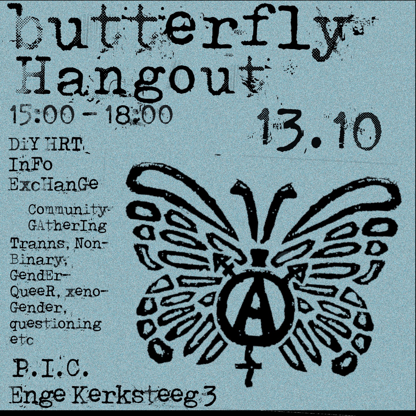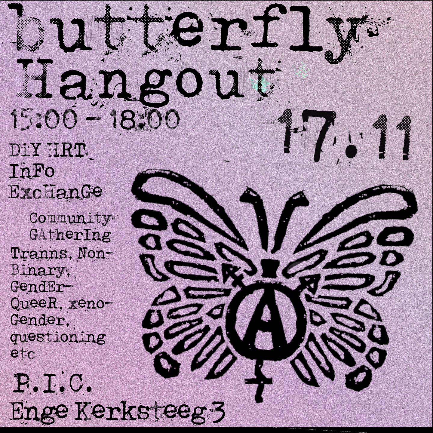 Heyyyy! Upcoming Sunday the 17th of November at 15:00, we invite you all to our the next monthly butterfly hangouttttt <3 Come by for a coffee, tea or who knows what at the PIC. Excited to share the space with everyone again :3! For all those not yet in the know, butterfly is a trans-focused, horizontally-run community space. We organise hangouts, skillshares, and anything else people excited for. Oh and by the by... enbies, genderqueers, eggs and allies, you’re also more than welcome to swing by! <3 The event will take place from 15:00 until 18:00, 17th of November, at the lovely P.I.C. (Enge Kerksteeg 3), cya there!!!!! UwU <333