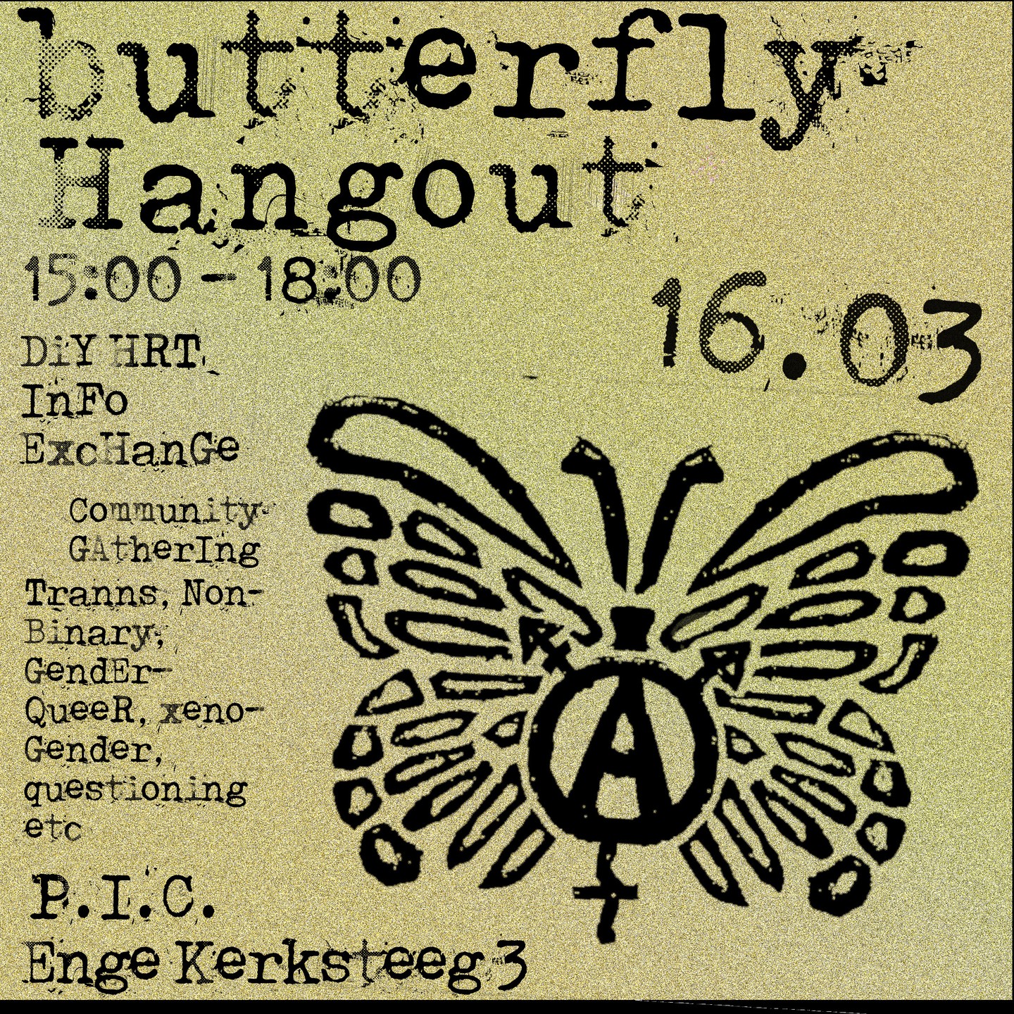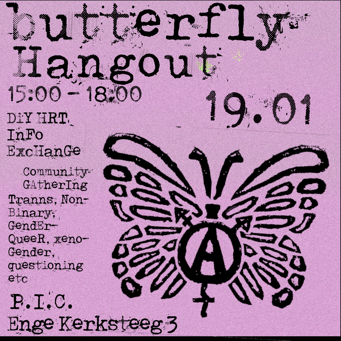 Hey dears <3 Upcoming Sunday the 19th of January at 15:00, we invite you all again to our next butterfly hangout <3 Come by for a coffee, tea or who knows what at the PIC. Excited to share the space with everyone :3! For all those not yet in the know, butterfly is a trans-focused, horizontally-run community space. We organise hangouts, skillshares, and anything else people excited for. Oh and by the by... enbies, genderqueers, eggs and allies, you’re also more than welcome to swing by! The event will take place from 15:00 until 18:00, 19th of January, at the lovely P.I.C. (Enge Kerksteeg 3), cya there!!!!! UwU <333